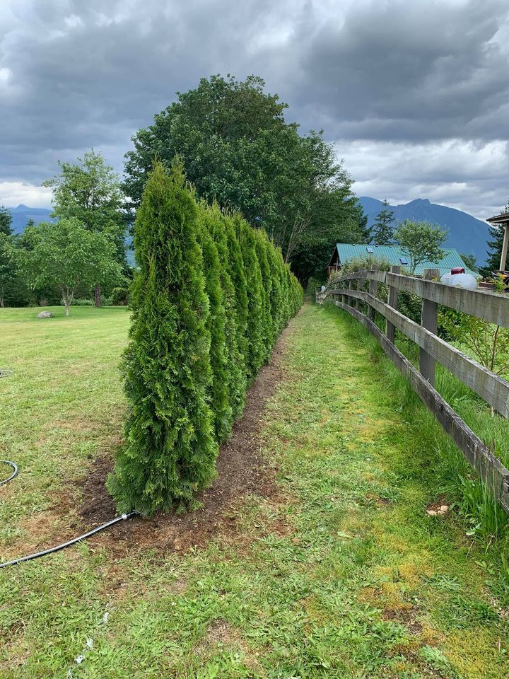 Video above shows a hedge planted by the Green Giant Nursery team consisting of 5ft Emerald Greens. Great for Privacy and noise blocking.